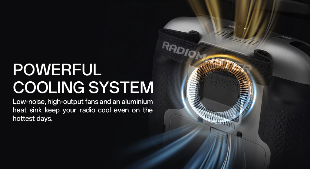 Чтобы обеспечить стабильную работу даже в самые жаркие дни, RadioMaster TX15 получил эффективную систему охлаждения с активным вентилятором и алюминиевым радиатором. В большинстве передатчиков нагрев компонентов на высокой мощности может приводить к снижению производительности, нестабильности сигнала или даже сокращению ресурса электроники. TX15 решает эту проблему благодаря сочетанию малошумного вентилятора с высоким воздушным потоком и специально спроектированного теплоотводящего блока из алюминиевого сплава. Эта система работает почти бесшумно, но при этом эффективно рассеивает тепло от процессора STM32 H7 и RF-модуля ExpressLRS, сохраняя их в стабильном температурном диапазоне даже при максимальной мощности передатчика. Это означает, что пилот может использовать TX15 для длительных полетных сессий без риска перегрева и снижения сигнала.